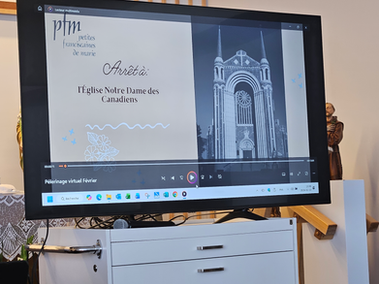 Les personnes présentes à cette rencontre ont continué leur pèlerinage virtuel. C’est madame Diane Harvey qui a agi comme animatrice de la rencontre pour une première fois. Les laïcs associés se sont arrêtés comme prévu à l’église Notre-Dame-des-Canadiens pour se rappeler un évènement important vécu dans les premières années de la fondation de la congrégation des Petites Franciscaines de Marie. Sœurs Marie-Dominique et Marie-des-Sept-Douleurs nous ont fait revivre leur expérience et leurs sentiments à la suite du refus de la communion par le curé Brouillet en l’église Notre-Dame-des-Canadiens, à Worcester.